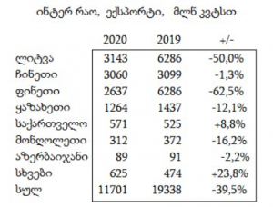 „ინტერ რაოს“ მიერ გამოქვეყნებული 2020 წლის ანგარიშის თანახმად, რუსეთიდან ელექტროენერგიის ექსპორტი 39,5%-ით იყო შემცირებული