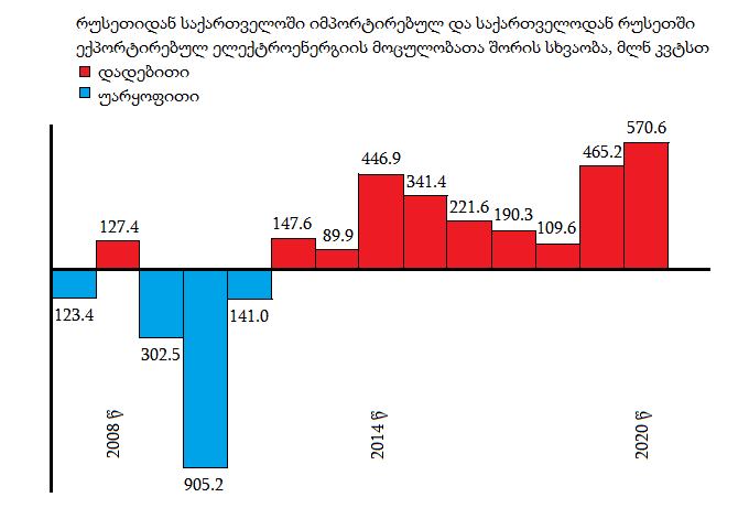 ესკოს მონაცემების თანახმად, 2020 წელს საქართველოში რუსეთიდან იმპორტირებული იყო 570 მლნ კვტ სთ ელექტროენერგია, „ინტერ რაოს” მიერ პრეზენტაციაზე გაცხადებული 6%-იანი წილი საერთო ექსპორტში კი არის 900 მლნ კვტ სთ ანუ 57,7%-ით მეტი, ვიდრე წინა, 2020 წელს, 71,6%-ით მეტი, ვიდრე 2019 წელს და 335,8%-ით მეტია, ვიდრე 2018 წელს.
