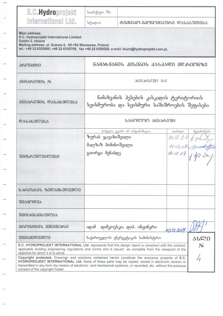 ისიც ფაქტია, რომ ვერც ერთი ენერგეტიკული და ინფრასტრუქტურული პროექტი ვერ იხილავს მზის სინათლეს, თუკი ის არ იქნება განხორციელებული სპეციალურად შემუშავებული სეისმურია უსაფრთხოების რუკის შესაბამისად.